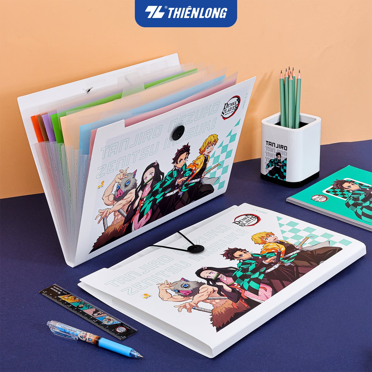 Bìa 8 ngăn hồ sơ tài liệu văn phòng – học sinh A4 Thiên Long Demon Slayer DF-006/DS