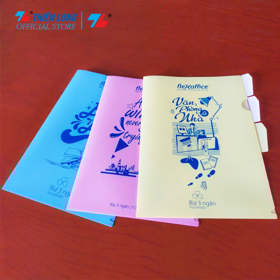 Bìa hồ sơ 3 ngăn Thiên Long Flexoffice A4 FO-DIF002 — chất liệu dày dặn, nhiều ngăn tiện lợi.