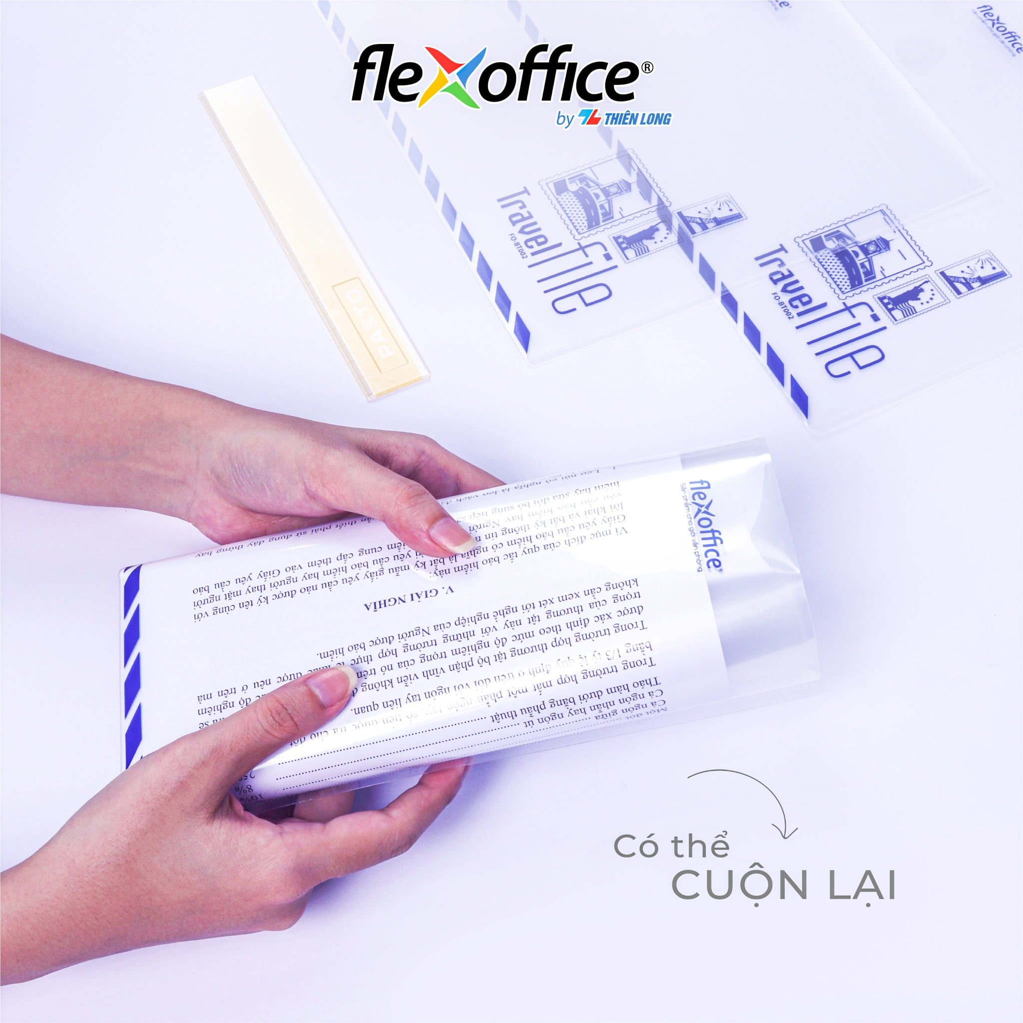 Bìa bao thư A4 Travel File Thiên Long Flexoffice lưu trữ 100 tờ A4 — chứa tài liệu gọn gàng, bền bỉ, dễ phân loại.