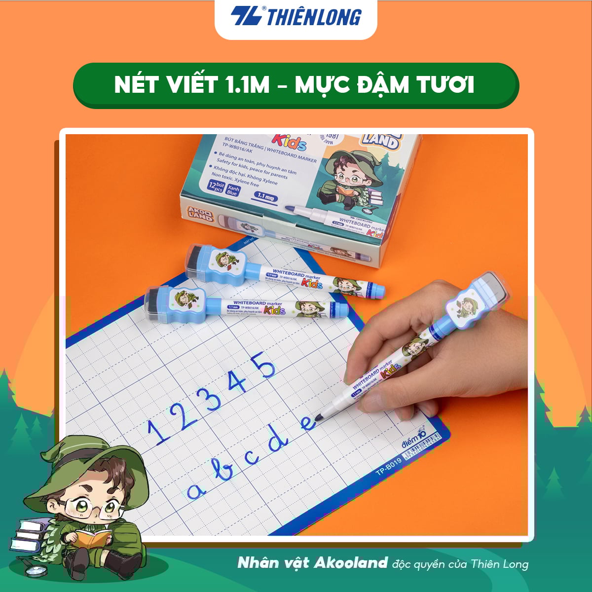 Bút lông bảng – Whiteboard Marker for Kids Thiên Long TP-WB016/AK – Nét viết 1.1mm Không Xylene Không độc hại – Nhân vật Akooland thế giới học cụ thần kỳ