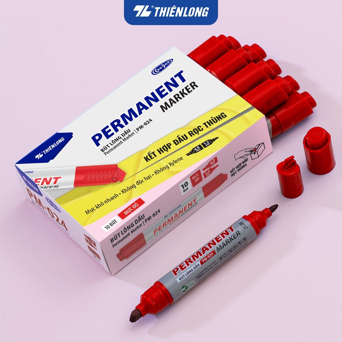 Bút lông dầu Thiên Long 2 đầu mực – Permanent Marker PM-024 – Kết hợp đầu rọc thùng