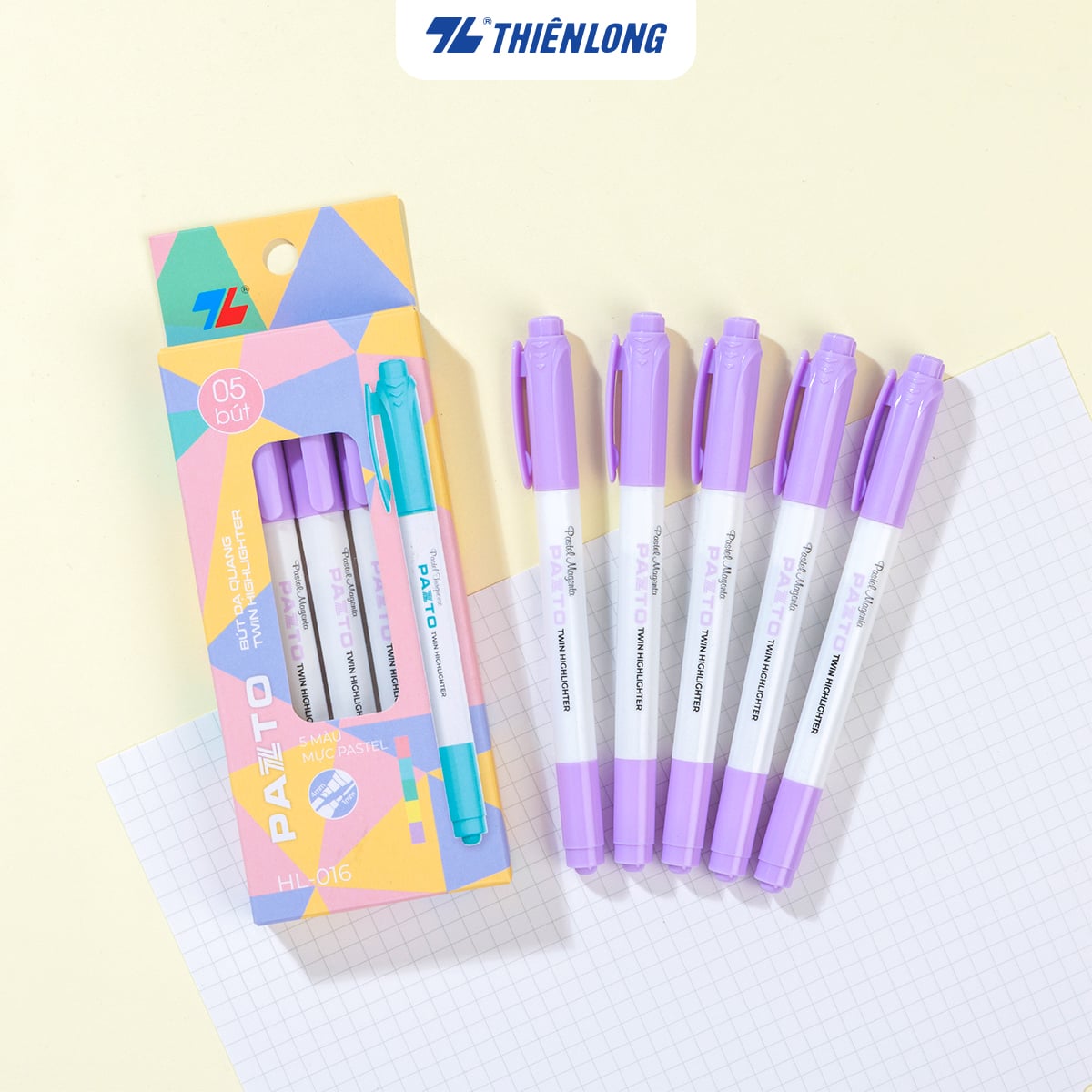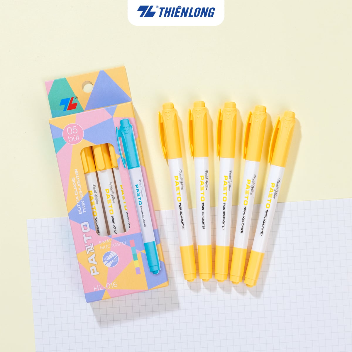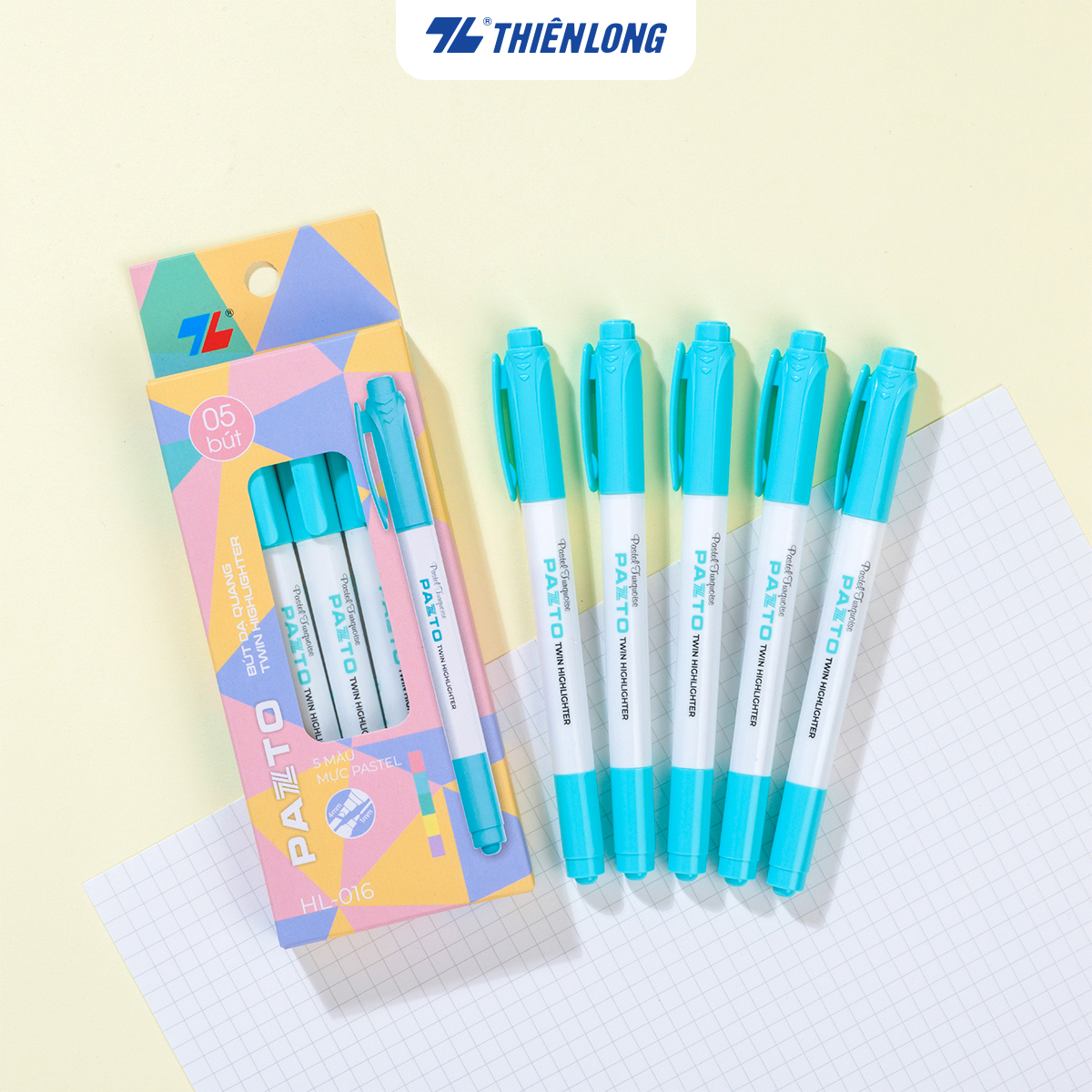 Combo 5 Bút dạ quang màu Pastel Thiên Long Pazto HL-016 – Bút dạ quang rửa được – Photocopy không làm mất nét chữ bên dưới — nét đậm rõ ràng, thích hợp viết bảng và trang trí.