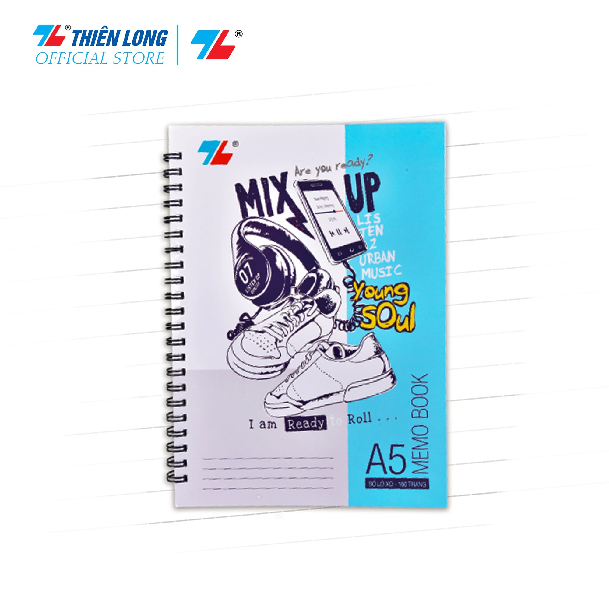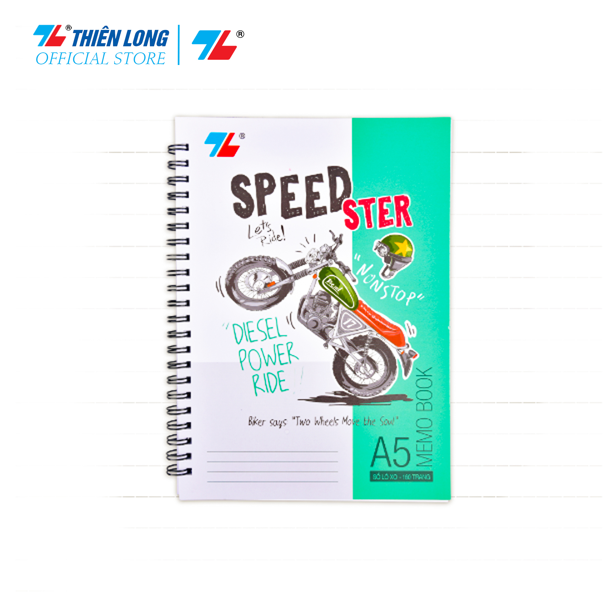 Sổ lò xo dọc A5 160T MB-004 — giấy trắng mịn, bìa cứng cáp, tiện lợi ghi chép.