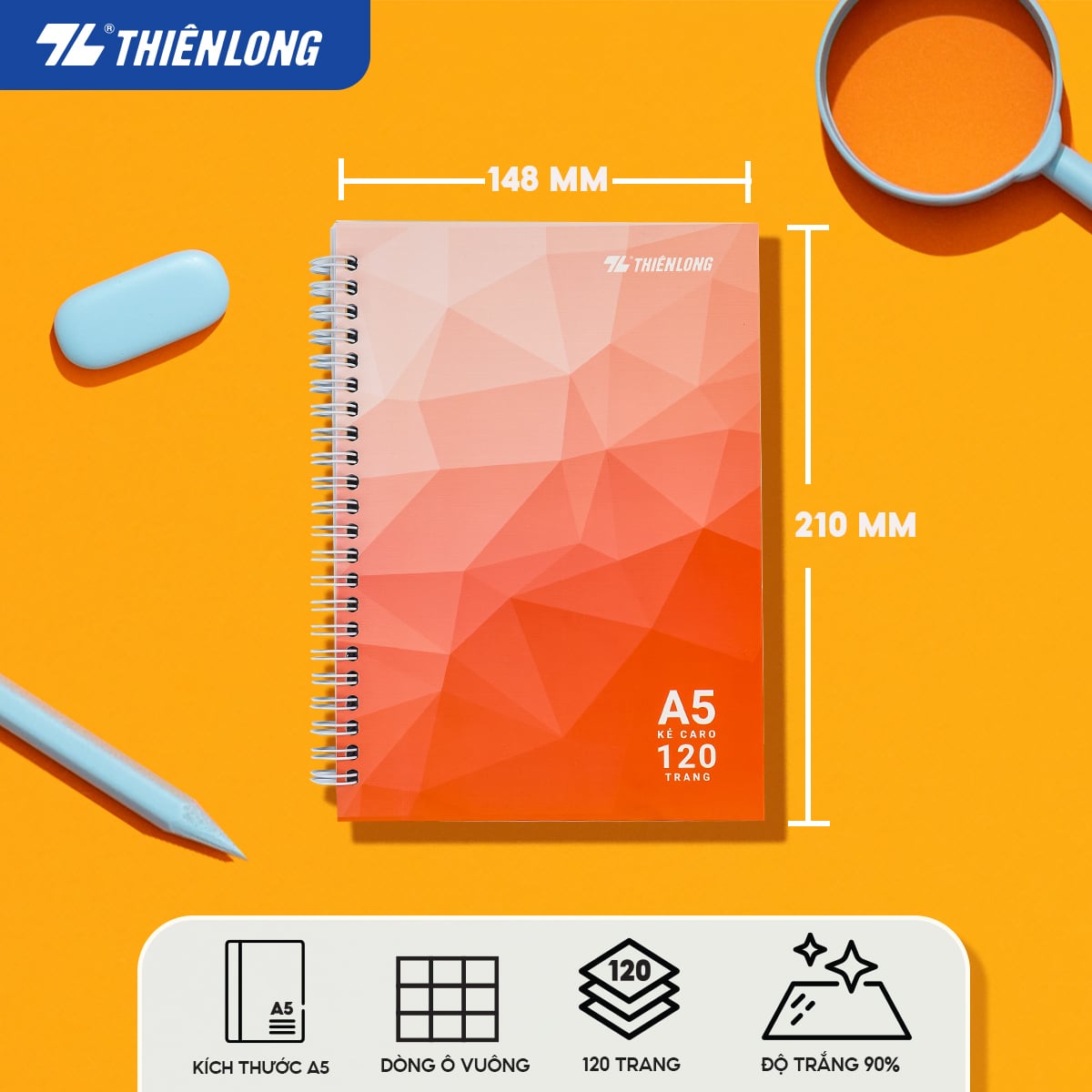 Sổ lò xo đường kẻ caro A5 Thiên Long MB-015 – Màu ngẫu nhiên — giấy trắng mịn, bìa cứng cáp, tiện lợi ghi chép.